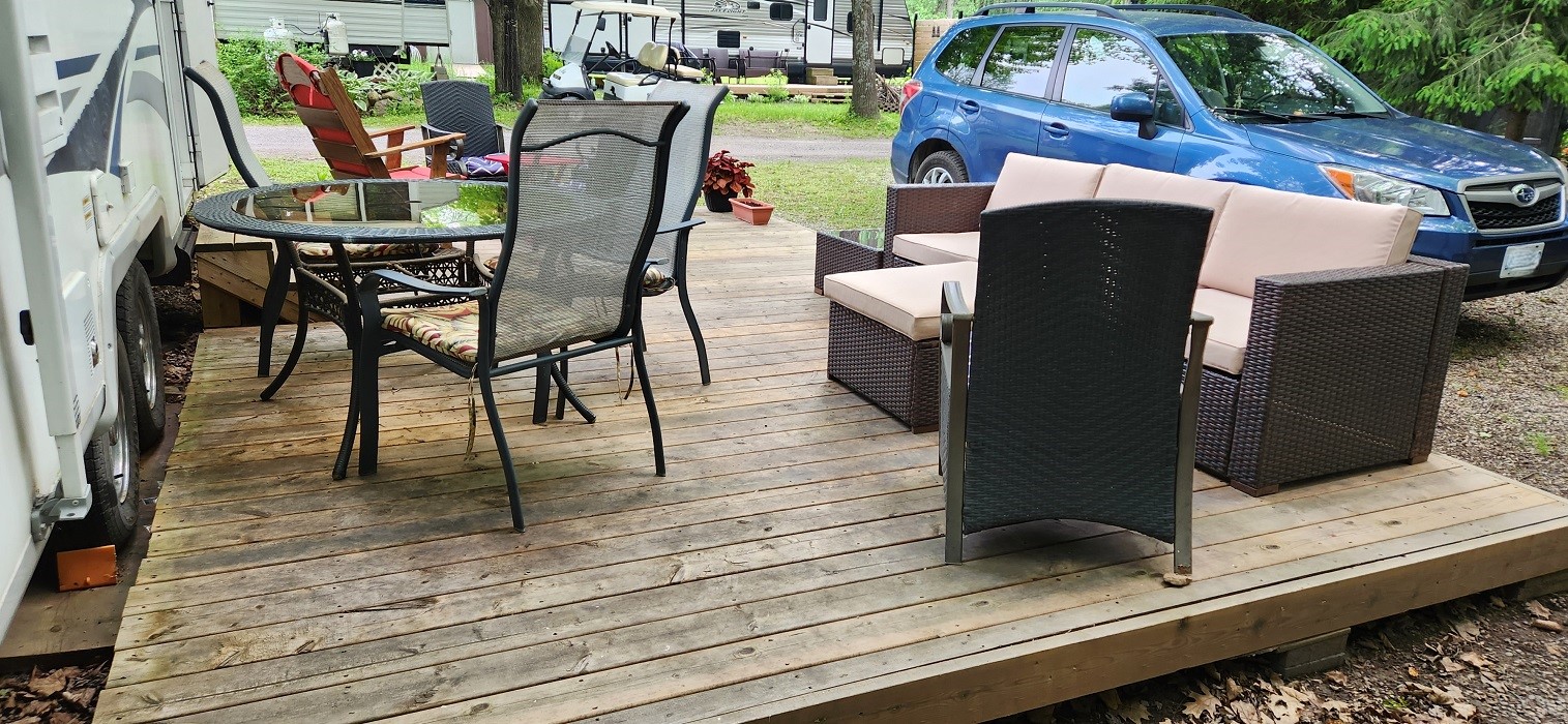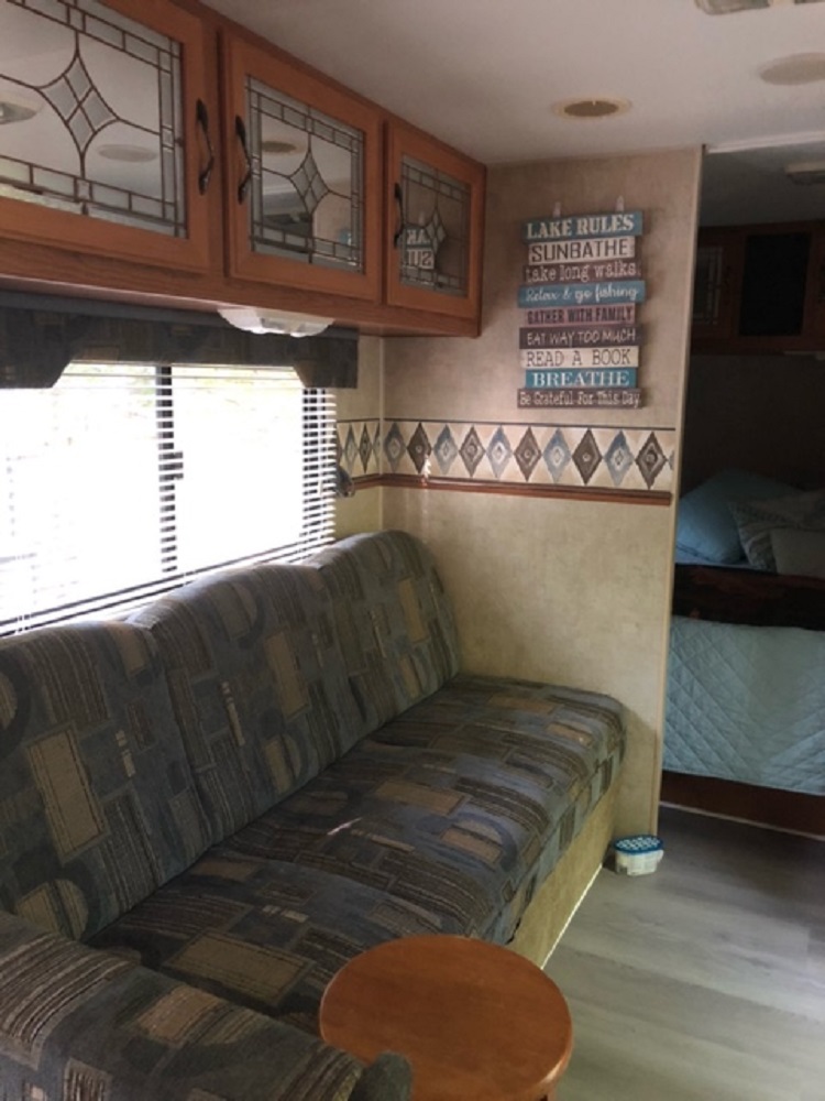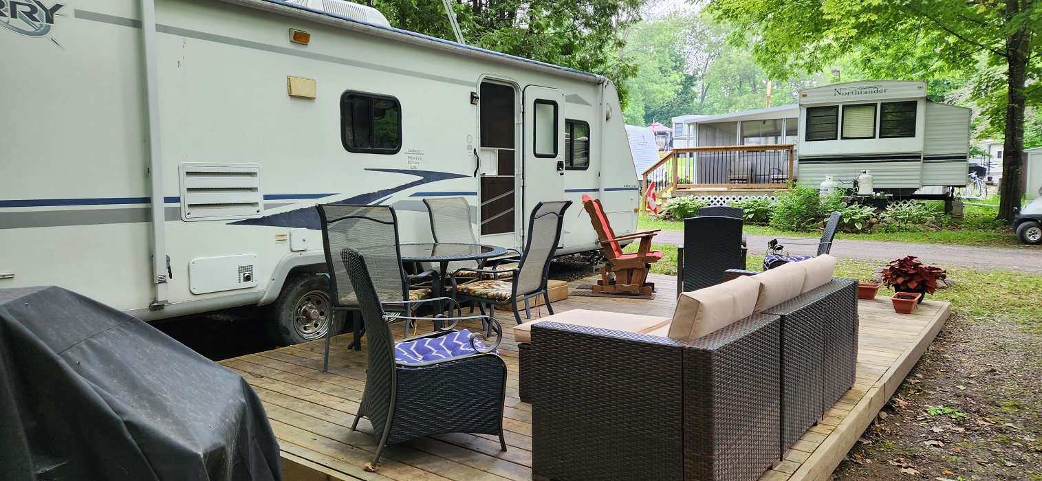 This is a clean, nicely laid out trailer with plenty of sleeping options. Two bunks in the back, fold down table and couch. The main bedroom has a queen size bed and is located in the front of the trailer. Sleeps 6 total. Rear bathroom with tub. Comes loaded with all the essentials to get you started. Kitchenware, small appliances and TV. The air conditioning works great. Also included is an 8 x 6 shed with contents. New Laminate flooring throughout. Roof redone in 2024. Located on a quiet tree covered site. Please call for an appointment to view.