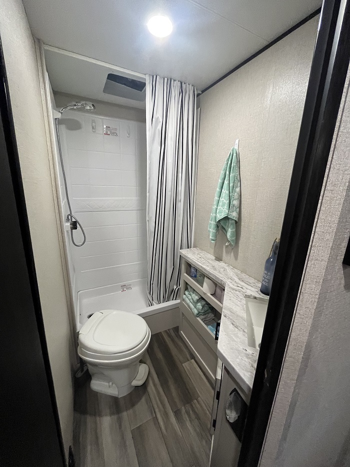 This is an almost new, still under warranty piece of paradise. The platinum warranty expires July 1, 2030. Located on a large lot, this trailer includes a 10’ by 20’ deck, hard roof gazebo as well as an 8 x 10 shed. The trailer has one slide that opens up the main living area. The queen size bed is located in the front of the trailer. Fold down couch and convertible dinette add more sleeping area. Two bunks in the rear of the trailer complete the sleeping arrangements. The kitchen is equipped with a large fridge/freezer, microwave and 3 burner stove. Lots of storage as well. Kitchenware and some linens also included as well as some outdoor furniture. The outdoor kitchen includes a mini fridge and storage. New RV cover for protection. Bring your gear and move right in.